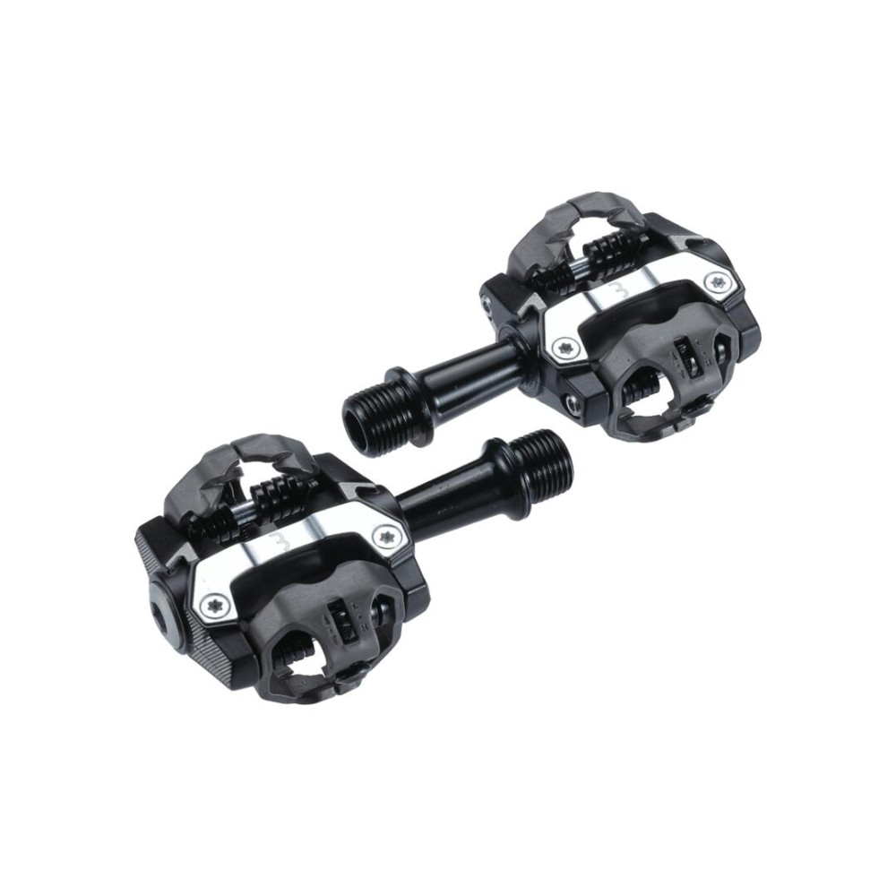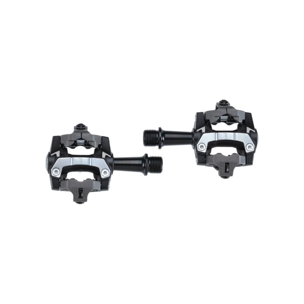 SPD kompatibilis MTB pedál. Nyitott kialakítás a könnyű sáreltávolítás érdekében. Megerősített rozsdamentes acél test. CNC-megmunkált tengely. Zárt csapágy a hajtókarhoz való csatlakozásnál, golyós csapágyazás a külső résznél. Állítható kioldónyomaték. SPD-kompatibilis BBB Click & Go pedálstoplival. Súlya: 294 gramm.