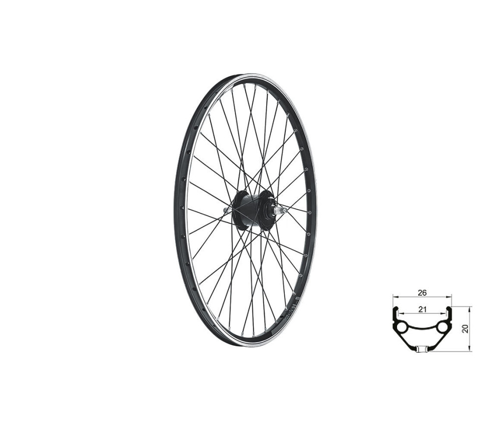 Fűzött első kerék KLS DRAFT Dynamo V-brake, 26", black