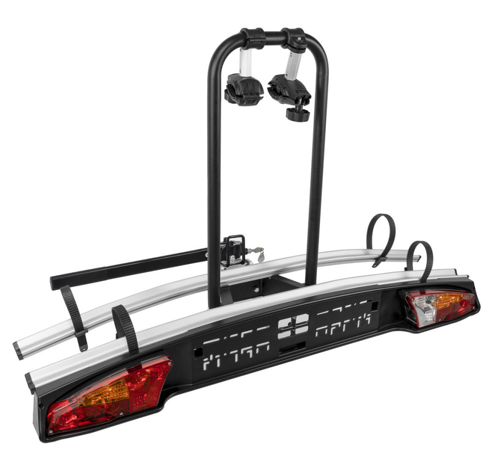 Kompakt és könnyű, dönthető vonóhorogra szerelhető kerékpárszállító.