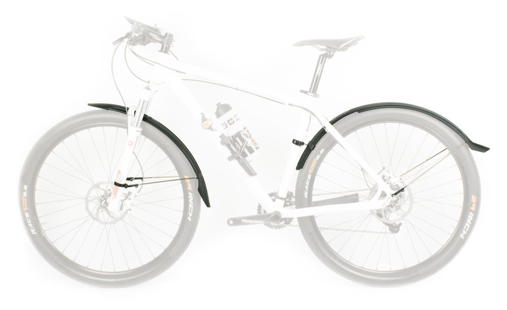 A Velo sárvédők "nagytesója" ideális a 29"-es mountain bike-ok számára. Univerzális rögzítése nagyon praktikussá teszi, biztonságosan felszerelhető minden általánosan kapható vázra. A pálcaszett (tartozék) még nagyobb stabilitást biztosít. Maximum köpenyszélesség: 2.35"